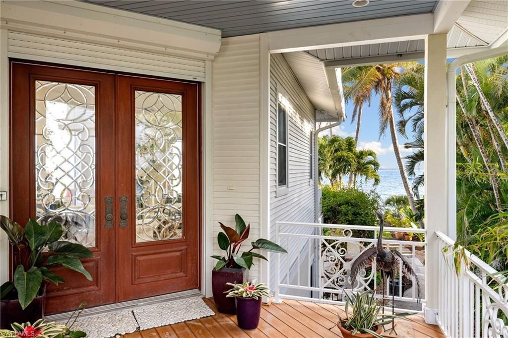 With unobstructed views of the bay, perfectly framed by the tropical landscape, this residence embodies the essence of waterfront living. Upon entering the main level, you will be greeted by an abundance of natural light and vistas complimenting the fireplace in a harmonious blend of coastal and classic design. Entertain family and friends in the formal dining area or the main level balconies overlooking your backyard as dolphins swim in the background. The kitchen boasts views of the bay and of...With unobstructed views of the bay, perfectly framed by the tropical landscape, this residence embodies the essence of waterfront living. Upon entering the main level, you will be greeted by an abundance of natural light and vistas complimenting the fireplace in a harmonious blend of coastal and classic design. Entertain family and friends in the formal dining area or the main level balconies overlooking your backyard as dolphins swim in the background. The kitchen boasts views of the bay and offers plenty of cabinet and counterspace, a gas range and a wet bar that connects the kitchen to the family room. The primary quarters offer two walk in closets and a spacious bedroom surrounded by mature landscaping that integrates with the natural beauty of the surroundings. The well appointed guest bedrooms, one on the main level and the other on the first floor, award your guests with privacy. On the first floor you'll find a separate sitting room, a den (which the owners used as an exercise room) and a laundry room with an extra refrigerator and sink. From the office and recreation rooms you can step outside onto the expansive patio, where the beauty of coastal living truly comes to life. Sip cocktails as you watch boats glide across the bay, or indulge in alfresco dining under the pergola covered in blooming flowers. This waterfront setting offers endless opportunities for outdoor recreation, from kayaking and paddleboarding to fishing and birdwatching. The boating community of St. James City is conveniently located a short boat ride away from the Sanibel Causeway and beaches to the south and to the north, through Pine Island Sound, to the world famous Cabbage Key, Useppa Island, and Boca Grande pass. Whether appreciating some of the most pristine natural habitats in SWFL, sport fishing for tarpon or bar hoping by water, the options are endless